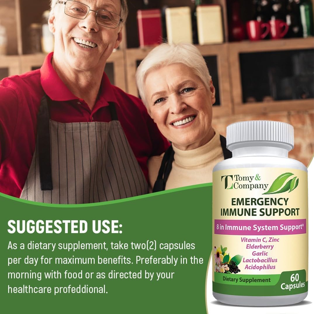 • Emergency Immune Support Elderberry Capsules, for Men and Women, with Vitamin C, Vitamin D3, Zinc, Gluten Free, Vegetarian 60 Capsules